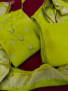 # Unstitched Suit With Organza Dupatta
