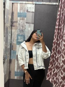 Embroidered White Denim Jacket