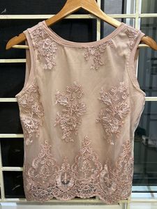 Beige net Embroidered Top
