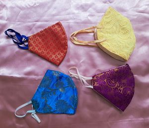 3 Benarasi & 1 Chickankari Embroidery Mask.