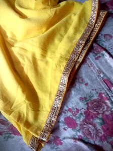 A yellow grara suit is so beautiful but I have another one than I am sell . A garara dupatta is very soft because sefon dupatta h . and garara is also good 😊. suit also full golden work with stone.
