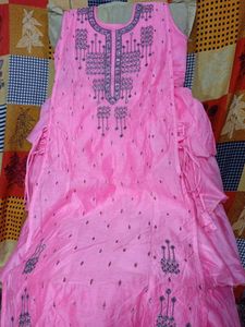 Baby pink colour dress totaly new. no wearing .full sleeves but no dupatta only frock suit and pajama.
