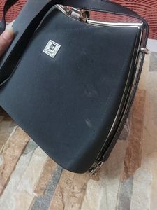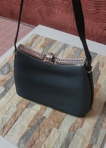 beautiful classy charcoal bag 😍 beautiful hook to open and stone line on top💖 perfectly match with party wear and casual wear 🥳 best for travelling ✈️ 🚆 best for office 🏬 sling bag belt is detachable with high quality hook 👌 1 liitle scratch..its not visible that much..i have shown in the pic.. by using flash light.. its not visible directly that much