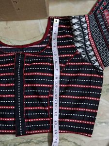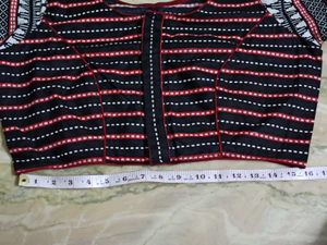 It is suitable for bust 40" Blouse length is 15" Sleeve length is 11" Sleeve width is 5.5" Blouse has princess seam in front with piping.