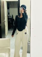 Stylish beige cargo pants with multiple pockets. Perfect for a casual, streetwear look. Comfortable and durable material. Can be dressed up or down for versatile styling options. Great for everyday wear.