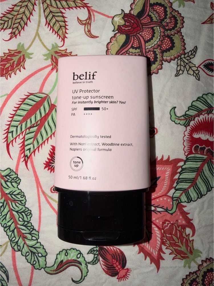 Belif UV Protector tone-up sunscreen for instantly brighter skin. Dermatologically tested, this sunscreen contains Noni extract, Woodbine extract, and Napiers original formula. Get protected and radiant skin!