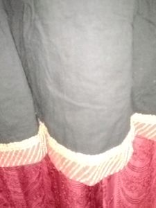here's a black cotton anarkali kurti with golden zari embroidery with gold and black stones stick on it. embroidery is both on front and back as shown in picture.