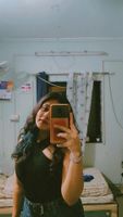 it is worn only once or twice! black Georgette top with purple flowers! and also has criss cross neck pattern!☺️🫶🏻 IT CAN BE FIT UPTO BUST 34