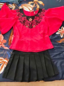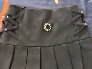 Black Pleated Skirt (Stretchable) With Top