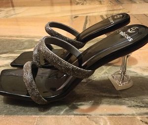 ⭐️Amina Muaddi inspired black rhinestone studded slip on heels