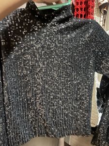 Black Sequin Cropped Blouse