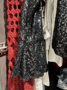 Add some sparkle to your saree with this fun, cropped blouse! Features black sequins, a zip-up front, and flared sleeves. Perfect for a wedding or a special occasion!