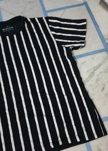 This Blotch t-shirt features a timeless black and white vertical striped pattern. Perfect for casual wear, this comfortable tee is a great addition to any wardrobe. Pair it with jeans or shorts for a relaxed look. Size L. Get this stylish shirt now!