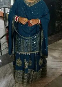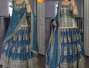 Elegant blue kurta set with intricate silver embroidery. Perfect for festive occasions and special events. This beautiful outfit features a stylish kurta and matching bottom. Add a touch of tradition and elegance to your wardrobe with this stunning ensemble.
