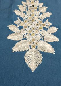 Elegant blue tunic featuring delicate white floral embroidery.fitting made for 32bust size..its new
