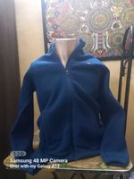 Stay warm and comfortable in this cozy blue fleece jacket. Perfect for layering or wearing on its own. It features a full zip front and pockets to keep your essentials close. Great for outdoor activities or casual wear. The jacket is in good condition.