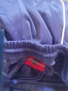 Comfortable blue track pants with a white stripe. Perfect for workouts or casual wear. Easy to care for and a great addition to your wardrobe. Get yours today!
