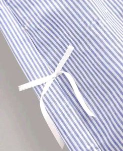 The trouser is very pinteresty to wear. It has bow detailing and blue stripped design. You can wear it for every season. It had a very good and soft fabric. Perfect for causual look or going out. I'm selling this because the pants are tight for me.