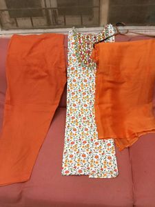Brand New Floral Embroidered Kurti with Pant (Used) + Synthetic Dupatta(New)