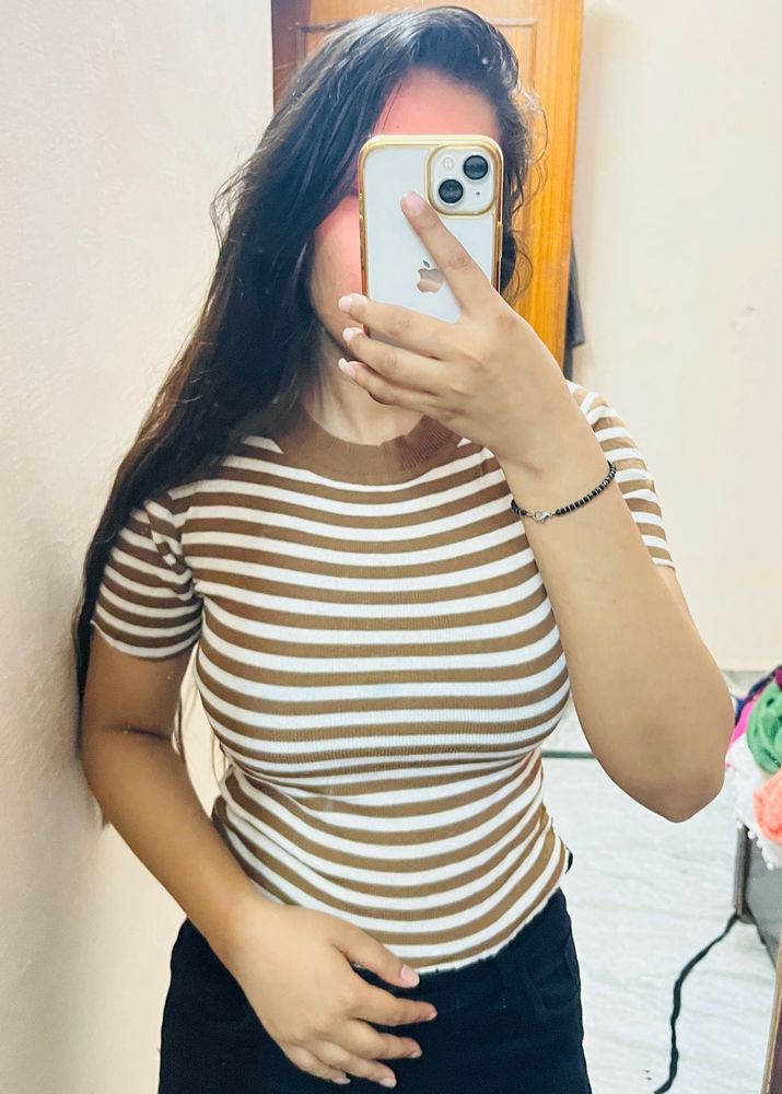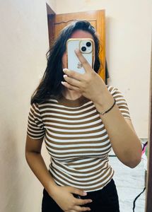 Super cute and comfy ribbed cotton blend top with brown and white horizontal stripes. Body-hugging fit with stretchable fabric — perfect for casual days, college wear, or even a cute Insta look. Pair it with jeans or shorts for an effortless vibe!
