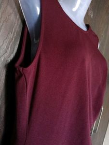 Elegant burgundy midi dress featuring a flattering sleeveless design and a stylish ruffle hem. Perfect for special occasions or a night out! The dress also has a slightly ruched detailing on the side.