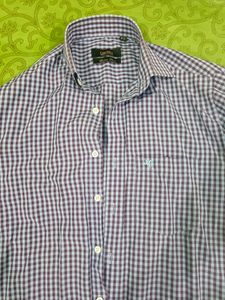 Cantabil blue check shirt, best quality, not in use, very good for office purpose, medium size....grab it..