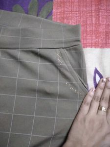 Comfortable and stylish pants with a subtle checked pattern, perfect for everyday wear. The neutral color makes them easy to pair with various tops and shoes. A great addition to your wardrobe!
