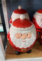 Add some holiday cheer to your kitchen with this adorable Santa cookie jar. Perfect for storing your favorite holiday treats or as a festive decoration. This charming piece will bring joy to your home during the Christmas season and beyond. It's in like new condition.