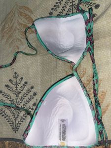 combo or beautiful bikini bra, halter neck, one is evergreen black, other is vibrant sea green with print