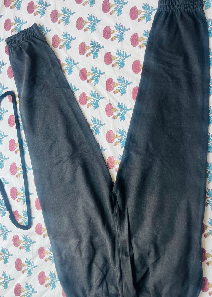 These black pants are perfect for everyday wear. They're comfortable and stylish, great for lounging or running errands. The fabric is soft and feels great against the skin. A versatile addition to any wardrobe! In good condition.