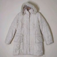 Stay warm and stylish this winter with this cream-colored padded coat. Features a comfortable fit and a cozy hood. Perfect for cold weather outings. A stylish and functional addition to your wardrobe. This is a well maintained pre-owned coat.