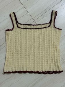 A cute knit like crochet tank top with maroon border ❤️🤍