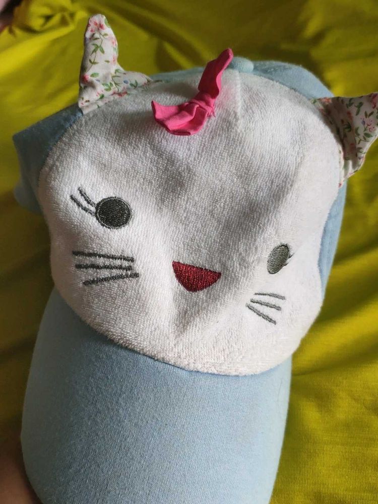 Adorable blue cat-themed baby cap with a playful design. Soft and comfy, perfect for keeping your little one stylish and protected from the sun. Great for everyday wear or special occasions. Makes a wonderful gift!from max mildly used