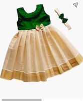 Adorable green ethnic dress for girls. Perfect for festive occasions or special events. This dress features beautiful detailing and a comfortable fit. Let your little one shine in this charming outfit!