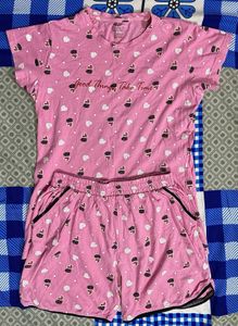 Adorable Cadila brand pink night pajama set with a sweet heart pattern.Includes a comfy t-shirt and shorts.Perfect for lounging or a cozy night's sleep.Size XS.📌FIXED PRICE