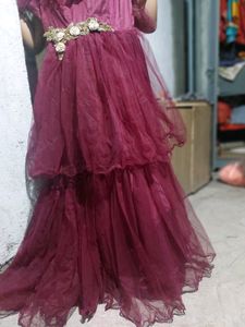 Dark Wine Colour Designer Long frock net