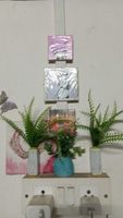 Add a touch of greenery to your home with this set of two faux fern plants. Each plant is potted in a small, square stone vase with a unique speckled finish. Perfect for adding a natural, minimalist accent to any room. Great for shelves, desks, or small spaces. These are pre-owned, but in excellent condition!