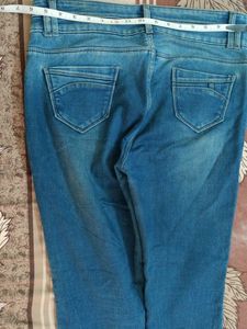 jeans is slightly used ,it's rugged but no imperfections as such ,it's slightly stretchable . Also u can check measurements.