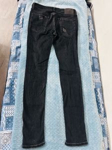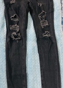 Cool distressed black jeans with ripped details. Perfect for a casual, edgy look. These jeans are in good condition and ready for a new home. Add some rock and roll to your wardrobe with these stylish denim pants!