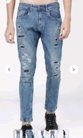Upgrade your wardrobe with these stylish distressed denim jeans. Featuring a modern design with strategically placed rips and tears, these jeans offer a trendy, edgy look. Crafted for comfort and style, perfect for casual outings or making a statement. Pair with your favorite sneakers or boots.