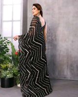 Stunning black and white saree with a unique zig-zag pattern. Perfect for festive occasions or special events. This saree offers a blend of traditional elegance and modern style. Comfortable to wear and easy to drape. Accessorize to create your own unique look!