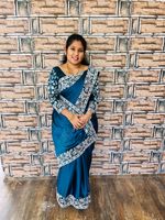Beautiful teal blue ethnic gown with intricate design. Perfect for special occasions or festive events. The gown features a unique pattern and a comfortable fit. Elevate your style with this timeless piece.