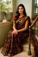 This beautiful brown saree features an eye-catching geometric pattern and is perfect for festive occasions. The saree is crafted from a comfortable fabric and adds a touch of traditional elegance to your wardrobe. Accessorize for a wedding or party, or wear it casually for a touch of sophistication.