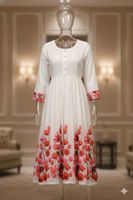 Stunning gold kurti featuring a delicate butterfly pattern, long sheer sleeves, and a flattering silhouette. Perfect for a special occasion or evening event, this dress is sure to turn heads. Accessorized with a matching clutch and belt to complete the look.