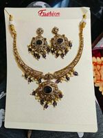 This beautiful gold-tone necklace and earrings set is perfect for special occasions or adding a touch of glamour to your everyday look. The intricate detailing and jewel accents make it a truly eye-catching piece. A great addition to your jewelry collection!