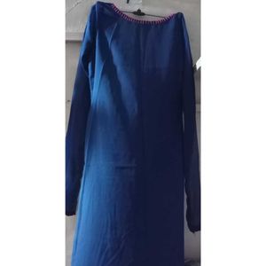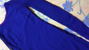 Georgette long navy blue kurta with long sleeves and neck pink thread work.