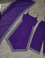 Stunning purple kurta set with delicate silver embellishments. Perfect for festive occasions or a stylish everyday look. This set exudes elegance and charm. The breathable fabric ensures comfort while the intricate detailing adds a touch of sophistication. Dress it up with heels or keep it casual with flats. A versatile addition to your wardrobe!