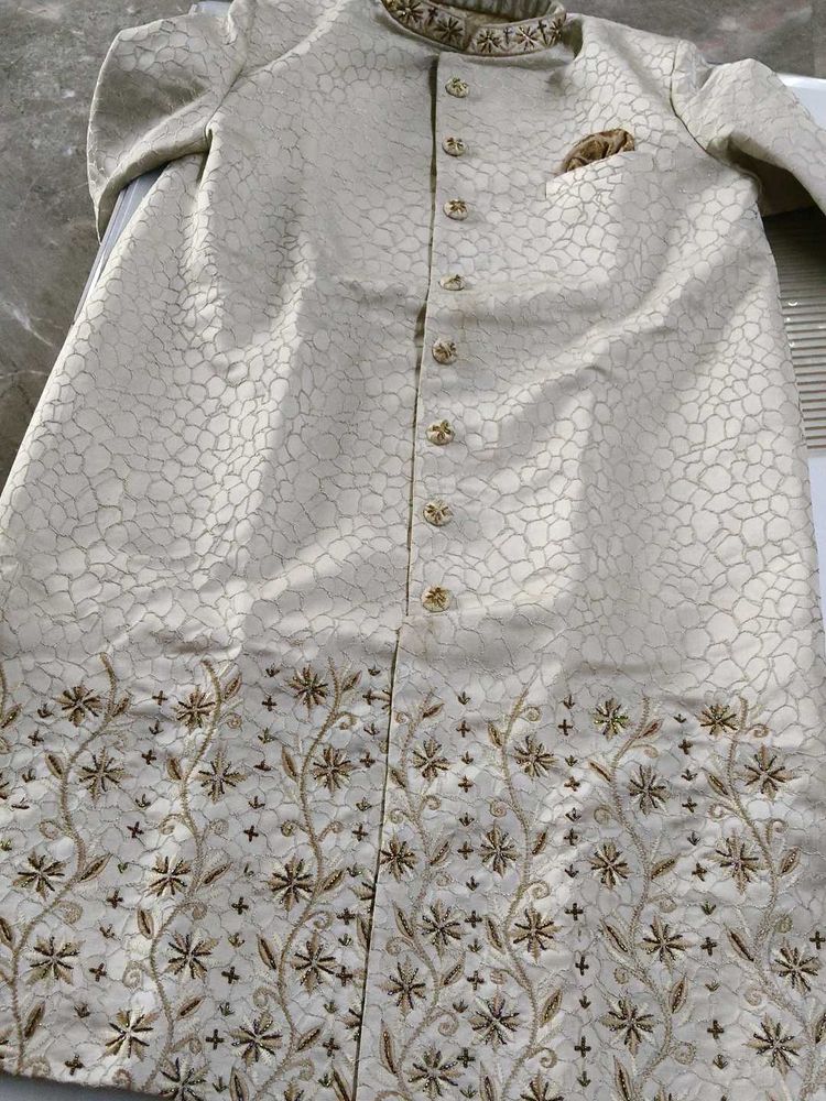 This sherwani exudes sophistication with its intricate detailing and subtle sheen. Perfect for weddings, festive occasions, or any special event where you want to make a lasting impression. The fabric feels luxurious against the skin, ensuring comfort throughout the day or evening.