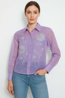 Beautiful green top with delicate floral embroidery. The sheer sleeves add a touch of elegance. Perfect for a special occasion or dressing up a casual outfit. Pair it with jeans or a skirt for a chic look. In great condition!