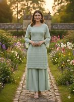 Elegant kurta set with intricate embroidery. Perfect for festive occasions or daily wear. Soft and comfortable fabric ensures a pleasant experience. This beautiful kurta set is in good condition and ready to wear.